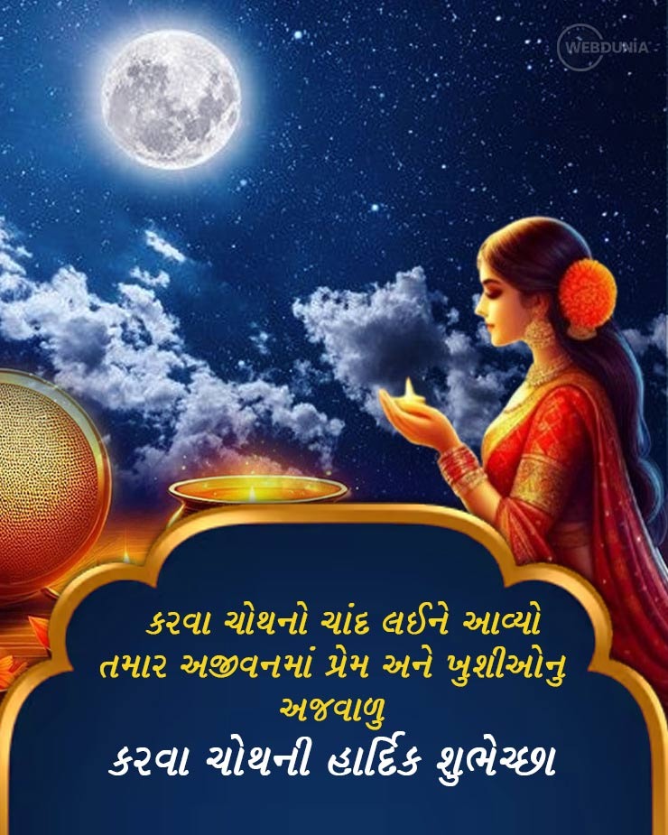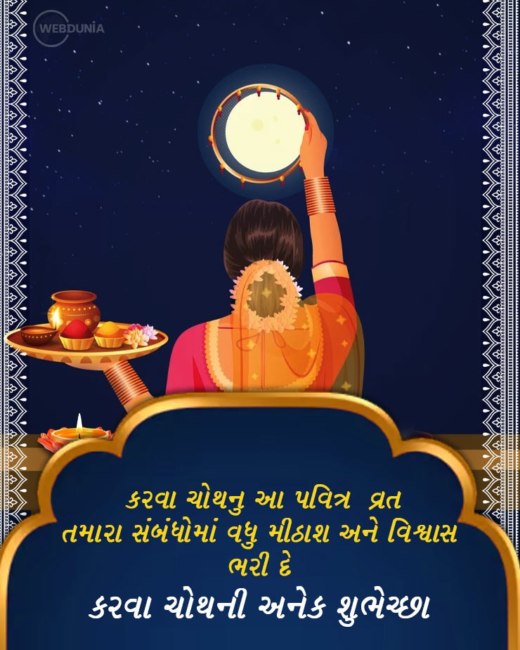Karwa Chauth 2024 Wishes: આ વખતે કરવા ચોથનો તહેવાર 20 ઓક્ટોબર 2024, રવિવારના રોજ ઉજવવામાં આવી રહ્યો છે. આ દિવસે પરિણીત મહિલાઓ તેમના પતિના લાંબા આયુષ્ય માટે નિર્જલા વ્રત (કરવા ચોથ વ્રત) કરે છે અને ચંદ્રની પૂજા કર્યા પછી તેમના હાથનું પાણી પીને ઉપવાસ તોડે છે. આ પહેલા બ્રહ્મ મુહૂર્તમાં સવારે ઉઠીને અને સરગી ખાઈને કરવા ચોથનું વ્રત શરૂ કરવામાં આવે છે. આવી સ્થિતિમાં, કરવા ચોથની શરૂઆતને વધુ ખુશખુશાલ અને સુંદર બનાવવા માટે, તમે આ પ્રેમ સંદેશ (કરવા ચોથ મેસેજીસ), કોટ્સ અને તસવીરો તમારા જીવનસાથી સાથે શેર કરી શકો છો અને તેમને આ દિવસે અભિનંદન આપી શકો છો.