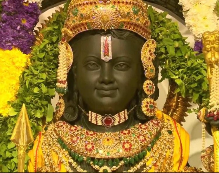 પ્રાણ પ્રતિષ્ઠા પછી, ગર્ભગૃહમાંથી રામલલાની પ્રથમ તસવીરો સામે આવી છે. રામલલા સોનાના આભૂષણોથી શણગારેલા છે અને તેમના હાથમાં સોનાથી બનેલું ધનુષ અને બાણ છે.