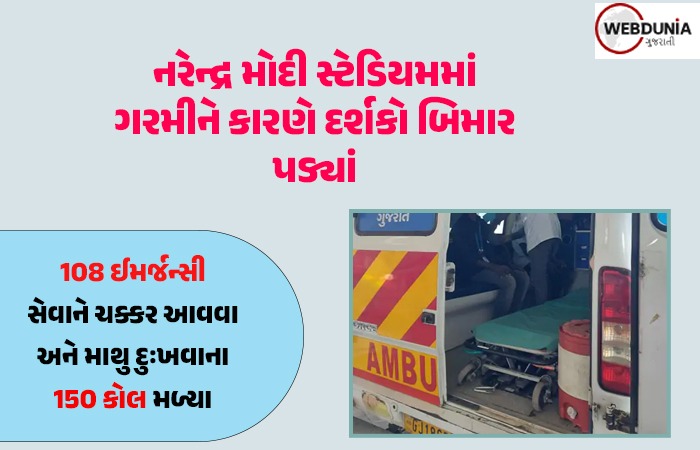 અમદાવાદના નરેન્દ્ર મોદી સ્ટેડિયમ ખાતે ભારત-પાકિસ્તાન વચ્ચેની હાઈ વૉલ્ટેજ મેચ ચાલી રહી છે. મેચ જોવા માટે પ્રેક્ષકો સ્ટેડિયમમાં પહોંચી ચૂક્યા છે. ગરમીના માહોલની વચ્ચે કોઈપણ પ્રકારની શારીરિક તકલીફ થાય તો ઇમરજન્સી માટે સ્ટેડિયમમાં કુલ 12 જેટલી 108 એમ્બ્યુલન્સ રાખવામાં આવી છે. સ્ટેડિયમમાં આઈસીયુ બેડ સાથેની મીની હોસ્પિટલ ઊભી કરાઈ છે. જેમાં વેન્ટિલેટર સાથેના 6 બેડ મૂકવામાં આવ્યા છે. આ સાથે જ ડોક્ટર, નર્સ સહિત 54 સભ્યોની ટીમ મેચ દરમિયાન સ્ટેન્ડ ટુ રાખવામાં આવી છે.