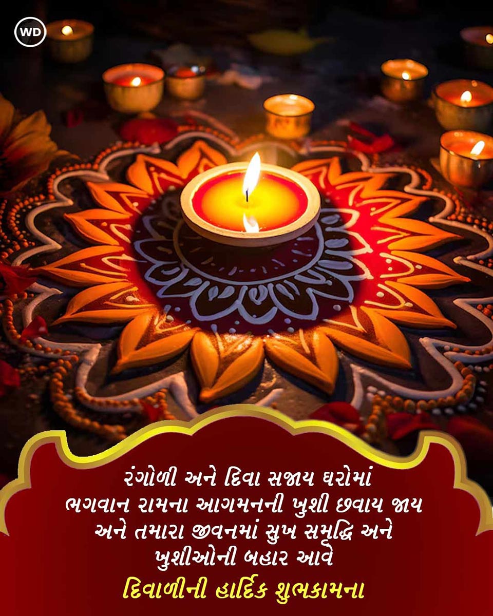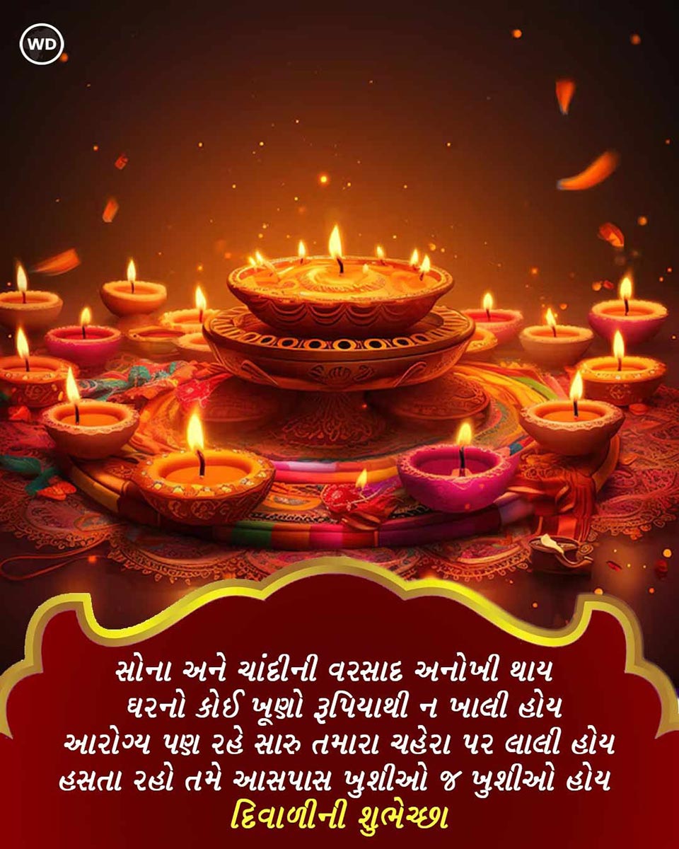 Diwali 2024 Wishes, Images: આ વખતે દિવાળીનો તહેવાર 31 ઓક્ટોબર ગુરૂવાર અને શુક્રવાર, 1 નવેમ્બર, 2024 એમ બે દિવસ દેશભરમાં દિવાળીનો તહેવાર ખૂબ જ ધામધૂમથી ઉજવવામાં આવશે. દર વર્ષે દિવાળીનો તહેવાર કારતક મહિનાની અમાવસ્યાના દિવસે ઉજવવામાં આવે છે. આ તહેવાર આનંદ, ઉત્સાહ અને ઉમંગનો તહેવાર છે. આ દિવસે, લોકો તેમના પ્રિયજનો, સંબંધીઓ અને મિત્રો વગેરેના ઘરે જાય છે અને તેમને મીઠાઈઓ અને ભેટો આપીને દિવાળીની શુભેચ્છા પાઠવે છે. જો તમે દિવાળી પહેલા નાના-મોટા દિવાળીની શુભેચ્છા સંદેશાઓ શોધી રહ્યા છો, તો આ સંદેશ તમારા માટે છે, જેની મદદથી તમે તમારા પ્રિયજનોને સુંદર રીતે દિવાળીની શુભકામનાઓ કહી શકશો.