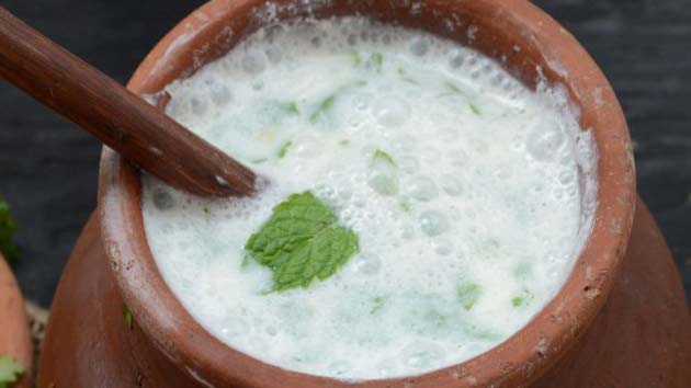 અડધા કપ દહીંમાં અડધી ચમચી જીરું પાવડર એક ચપટી સંચણ અને 1 ગ્લાસ પાણી મિક્સ કરી લો પછી એમાં આઈસ ક્યૂબ નાખી ઉપર થી ફુદીના અને કોથમીર નાખો અને પીવો.