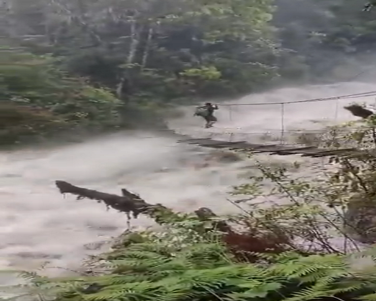 આજકાલ સોશિયલ મીડિયા પર એક ખતરનાક વીડિયો વાયરલ થઈ રહ્યો છે જે જોઈને તમારા શ્વાસ અધ્ધર થઈ જશે. આ વીડિયો અરુણાચલ પ્રદેશના અંજાવ જિલ્લાનો છે જ્યાં એક વ્યક્તિ દોરડા પર લટકીને પૂરના પાણીમાં અડધો ડૂબેલો સાંકડો ઝૂલતો પુલ પાર કરતો જોઈ શકાય છે. વીડિયોમાં, નીચે વહેતી નદી પૂરમાં વહેતી હતી અને દરેક પગલું મૃત્યુને હરાવવા જેવું લાગે છે. જેણે પણ આ દ્રશ્ય જોયું તેણે તે વ્યક્તિની હિંમતને સલામ કરી, જ્યારે કેટલાક લોકોએ તેને મૂર્ખતાપૂર્ણ કૃત્ય પણ કહ્યું.