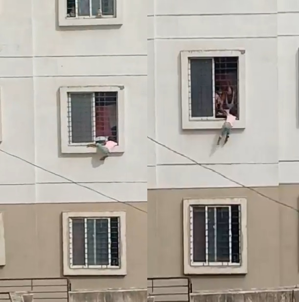 જાણવા મળ્યુ છે કે આ બાળકીની મમ્મી તેને ઘરે એકલી છોડીને આસપાસ ક્યાક શાકભાજી લેવા ગઈ હતી. નસીબજોગે બારીમાંથી નીચે ડોકાતા લટકી પડેલી બાળકી પર સામેની બિલ્ડિંગમાં રહેતા પડોશીઓનુ ધ્યાન જતા તેમણે બૂમાબૂમ કરી અને આસપાસના લોકો દોડી આવ્યા. ફાયર બ્રિગેડમાં કાપ કરતા એક વ્યક્તિએ ત્વરિત દોડીને બાળકીનો હાથ પકડી લેતા બધાને હાશ થઈ. બાળકી જે બારીમાથી લટકી હતી તેના સળિયા પણ નાના હતા એટલે તેને ત્યાથી કાઢવી પણ ખૂબ મુસીબતનુ કામ હતુ. પણ ઘીરે ઘરી કરીને બાળકીને કાઢી લીધી. આજકાલના બાળકો ખૂબ અળવીતરા હોય છે. એકલા હોય તો શુ કરે કહેવાય નહી. એટલે બાળકોને ઘરે એકલા છોડી જતા પહેલા સો વાર વિચારી લેવુ.