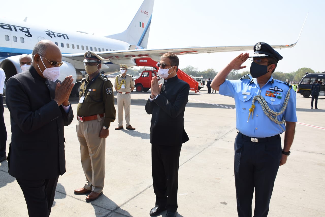 રાષ્ટ્રપતિ રામનાથ કોવિંદજી આજે ભાવનગર જિલ્લાનાં બે દિવસીય પ્રવાસે આવી પહોંચતાં તેમનું ભાવનગર એરપોર્ટ ખાતે રાજ્યપાલ આચાર્ય દેવવ્રતજી, શિક્ષણ મંત્રીશ્રી જીતુભાઇ વાઘાણી, મેયર શ્રીમતી કીર્તિબાળા દાણીધારીયા, સાંસદ ડો. ભારતીબેન શિયાળ, કલેક્ટરશ્રી યોગેશ નિરગુડે, પોલીસ અધિક્ષકશ્રી જયપાલસિંહ રાઠૌરે ઉષ્માસભર સ્વાગત કર્યું હતું.