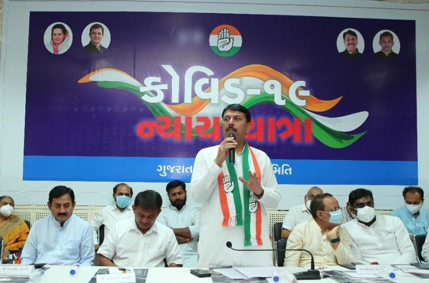 ગુજરાત કાંગ્રેસની સોમવારે મળેલી બેઠકમાં કોવિડ ન્યાય યાત્રા અભિયાન લોન્ચ કરવામાં આવ્યું હતું. ન્યાય યાત્રા અંતર્ગત કોંગ્રેસે સરકાર સામે કુલ ચાર માંગણીઓ મુકી છે. જેમાં સરકાર કોરોનાથી મૃત્યુ પામેલા વ્યક્તિના પરિવારને ચાર લાખની આર્થિક સહાય ચુકવે, કોરોનકાળ માં મૃત્યુ પામેલા સરકારી કર્મચારીના પરિવારના સભ્યને રહેમરાહ હેઠળ સરકારી નોકરી આપવી, સરકાર દ્વારા કોરોના માં સરકારી ખર્ચે સારવાર ના મળી શકી હોય તેવા મધ્યમ અને ગરીબ પરિવારના સભ્યોના પ્રાઇવેટ હોસ્પિટલના બિલની ચુકવણી રૂપાણી સરકાર દ્વારા કરવામાં આવે અને કોરોના મહામારીમાં ગુજરાત સરકારની બેદરકારીથી મૃત્યુ પામેલા લોકોની સાચી માહિતી મેળવી ઉપરોક્ત બાબતે ન્યાયિક તપાસ થાય કોગ્રેસે કોરોનાથી અવસાન પામેલા લોકોને શહિદનો દરજ્જા આપવા પણ માંગ કરવામાં આવી છે.