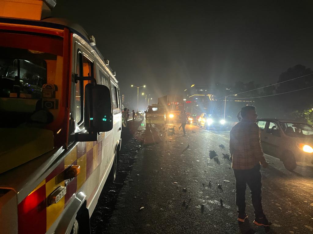 શહેરના ઇસ્કોન બ્રિજ પરથી પસાર થતાં ડમ્પરની પાછળ મહિન્દ્રા થાર કાર ઘૂસી જતા મોડી રાત્રે ગોઝારો અકસ્માત સર્જાયો છે. જેને જોવા માટે લોકોનાં ટોળાં ભેગાં થયાં હતાં. મોડી રાતે બનેલા આ અકસ્માતના કારણે બ્રિજ ઉપર ચોંકાવનારો બનાવ બન્યો હતો. પરંતુ તેનાથી ગંભીર ઘટના ત્યારબાદ બની હતી જ્યારે લોકો અકસ્માત જોઈ રહ્યા હતા. તે સમયે કર્ણાવતી ક્લબ તરફથી આવી રહેલી જેગુઆર કાર અંદાજે 160થી વધુની સ્પીડે દોડી રહી હતી. આ કાર અકસ્માત જોઈ રહેલાં ટોળાં પર ફરી વળતા કોન્સ્ટેબલ ધર્મેન્દ્રસિંહ સહિત 9 લોકોનાં મોત નીપજ્યાં છે. જ્યારે 10થી વધુ લોકોને ઈજાઓ પહોંચી છે. આ ઘટનામાં મૃત્યુ પામેલા લોકોને સોલા સિવિલ હોસ્પિટલમાં લાવવામાં આવ્યા છે.