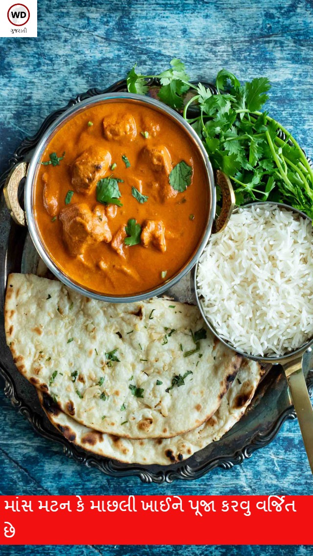 માંસ મટન કે માછલી ખાઈને પૂજા કરવુ વર્જિત છે