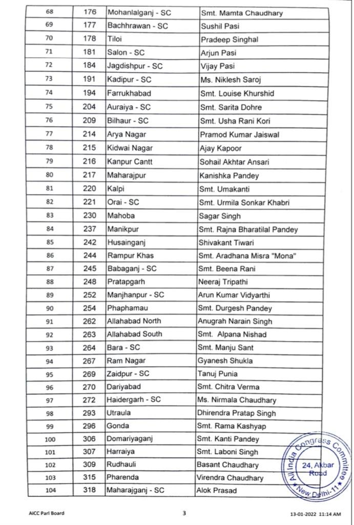 સદફ જફરને પણ ટિકટ આપવામાં આવી છે, જેમની સીએએ વિરુદ્ધ પ્રદર્શન બદલ ધરપકડ કરવામાં આવી હતી.