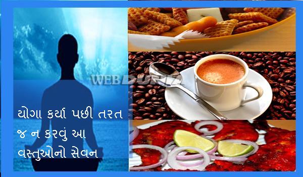 ફ્રાઇડ સ્નેક્સ, ચિવડો, ખાટી વસ્તુઓ, શાકભાજી વગેરેને સંપૂર્ણપણે નાબૂદ કરવી જોઈએ. યોગ પછી, શરીરનું તાપમાન નિયમન મેળવવા માટે થોડો સમય લાગે છે. તેથી, તરત જ ગરમ અને ઠંડી બન્ને વસ્તુઓ નુકસાનકારક થાય છે. યોગ બાદ ગરમ ચા - કોફી, ઠંડા ઠંડા છાશ, દહીં, તમારા આરોગ્ય માટે હાનિકારક હોઈ શકે છે.