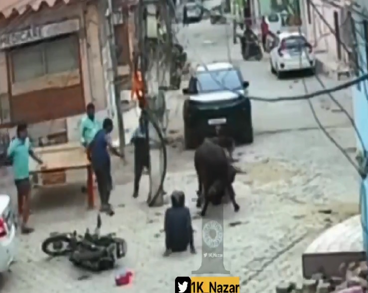 बचाने पहुँचे युवक को भी गाय ने चपेट में ले लिया