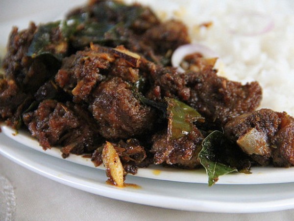 પછી મટનને નરમ થાય ત્યાં સુધી પકાવો. હવે એક પેનમાં બાકીનું તેલ ગરમ કરો. તેમાં ડુંગળી ઉમેરો અને સોનેરી થાય ત્યાં સુધી ફ્રાય કરો. હવે તેમાં લીલાં મરચાં અને ટામેટાં ઉમેરો. ટામેટાં નરમ થાય ત્યાં સુધી પકાવો. મસાલાને સારી રીતે મિક્સ કરો.